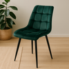 Zachte fluwelen stoel zijn helemaal van nu, zo ook de Stoel Bergen! Het donkergroen in combinatie met de geblokte stiksels geeft een stijlvolle glans aan de eetkamer, zodat de elegante, tijdloze stoelen altijd de toon zullen zetten.