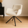 Eetkamerstoel Kemi in wit combineert comfort met een stijlvolle uitstraling. De zachte witte stoffen bekleding geeft de stoel een frisse en moderne look, terwijl het zwart gepoedercoate metalen onderstel zorgt voor een stoer contrast. Dankzij de armleuningen geniet je van extra ondersteuning en een ontspannen zitervaring.