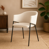 De samensmelting van linnen bekleding in een beigekleurige tint en een strak zwart metalen onderstel resulteert in een eigentijdse en verfijnde uitstraling. Deze stoel is niet alleen visueel aantrekkelijk maar is tevens ontworpen met duurzaamheid in gedachten. Het robuuste zwarte onderstel biedt stabiliteit, terwijl de linnen bekleding een zachte en comfortabele zitervaring garandeert.