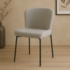Eetkamerstoel Vaasa in lichtgrijs brengt elegantie in je eetkamer. De zachte bouclé stof geeft de stoel een chique uitstraling, terwijl het zwart gepoedercoate metalen onderstel zorgt voor een stoere, moderne touch.