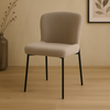 Eetkamerstoel Vaasa in zand is een elegante toevoeging aan je eetkamer. De zachte bouclé stof zorgt voor een verfijnde uitstraling, terwijl het zwart gepoedercoate metalen onderstel een stoere, moderne afwerking geeft.
