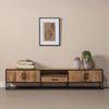 Een groots televisiemeubel met een fijne uitstraling! Met het grootste TV Meubel uit de Lowen-serie voegt u een stoere kast toe aan uw meubilair. Naast de televisie is er op het meubel ook nog veel ruimte voor extra decoratie of bijvoorbeeld een geluidsinstallatie. In het open vak kan een tv-ontvanger of een spelcomputer geplaatst worden, terwijl de kastjes ruimte bieden om andere spulletjes een handige plek te geven.
