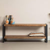 De massief mangohouten planken zijn behandeld met meerdere lagen houtolie met daaroverheen een natuurlijke bijenwas. Hierdoor kan het meubel eenvoudig met een vochtige doek worden afgenomen zodat de kast netjes en schoon kan blijven en de kwaliteit behouden blijft. Het stalen frame is afgewerkt met een zwarte poedercoat. De planken hebben een dikte van ongeveer 5 cm. De tussenruimte heeft een afmeting van 110 cm x 35 cm x 40 cm (breedte x hoogte x diepte).